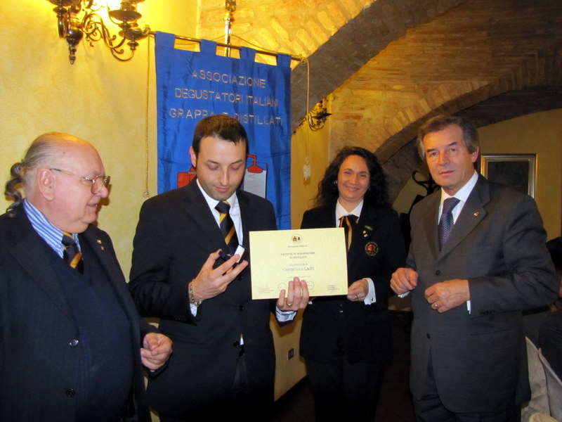 La Patente di Degustatore, con la spilla a forma di alambicco simbolo dell’A.D.I.D., è stata consegnata a Christian Laiti, Giovanni Fraccaroli, Roberto Foglia, Pier Giacomo Contessa; assenti per motivi personali Luca D’Andrea e Piergabriele Alcorini, ai quali la Patente verrà consegnata successivamente. La consegna dei preziosi attestati è stata a cura del Governatore A.D.I.D. di Brescia e provincia Renato Hagman, dal vice Govegnatore Alessia Biasiolo e dal presidente nazionale Antenore Toscani.