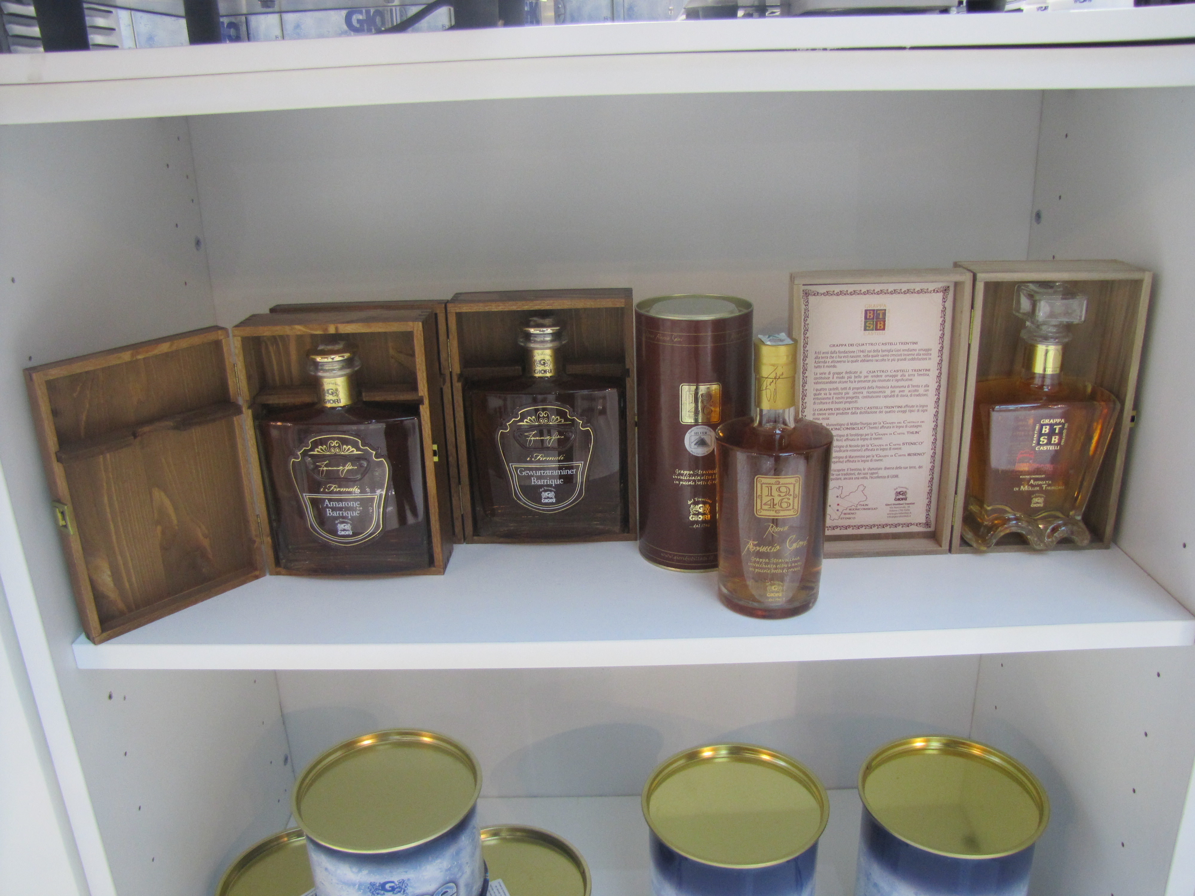 Tra le grappe, la linea grande riserva 19.46 Ferruccio Giori, grappa di marzemino, gewurztraminer e pinot nero, invecchiata oltre sei anni in piccole botti di rovere di Slavonia. E “acqua di Giori” silver, preziosa couvèe di due monovitigni autoctoni più rappresentativi della produzione trentina.