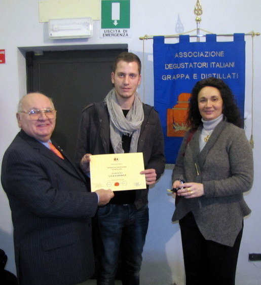 È stata consegnata domenica scorsa, durante il vernissage della mostra “D’IVO”, antologica di Ivo Compagnoni, a Brescia, la Patente di Degustatore di Distillati a Luca D’Andrea, corsista A.D.I.D. Brescia.