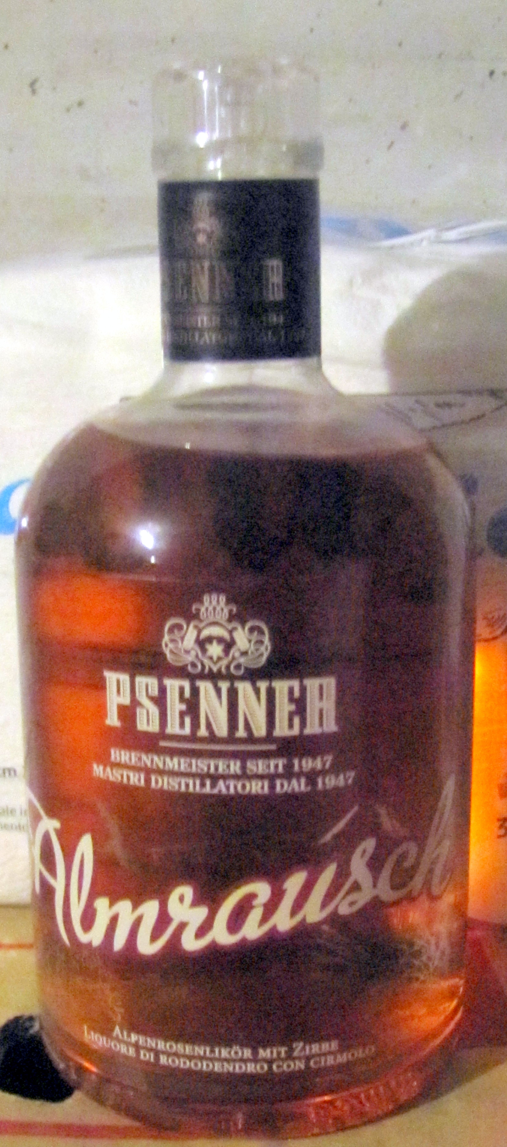 Lasciamo comunque questi discorsi in altro momento, e passiamo a degustare altri prodotti Psenner: sempre ottime le grappe, sia bianche che invecchiate; interessanti i sempre nuovi prodotti ottenuti dalla distillazione di frutta, sia di unico tipo che con abbinamenti. Ricordiamo il distillato di rododendro e cirmolo, ad esempio.