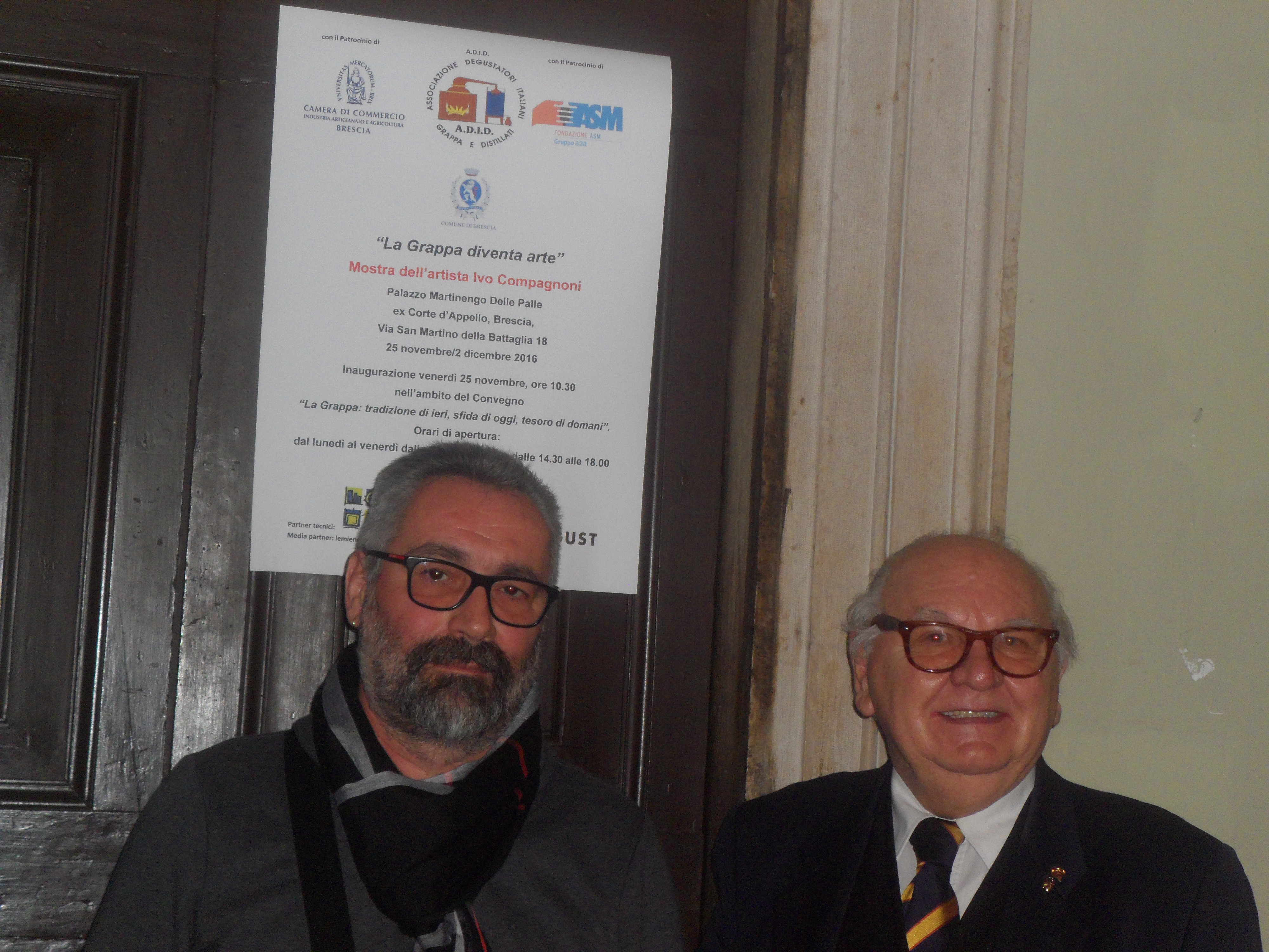Inaugurata a Brescia la mostra di Ivo Compagnoni “La Grappa diventa arte” alla presenza dell’assessore regionale allo Sviluppo Economico Mauro Parolini, di A.D.I.D. rappresentata da Alessia Biasiolo, Renato Hagman, Bruno Gobbi, Fioravante Buttignol, Franco Nobili, con le riprese di Brixia Channel. Tra i molti presenti, l’assessore comunale alla Sicurezza Valter Mucchetti, l’ingegnere Masserdotti di A2A, Antonio D’Azzeo della Camera di Commercio di Brescia, don Claudio in rappresentanza del Vescovo di Brescia, gli studenti dell’Agenzia Formativa “don Angelo Tedoldi” di Lumezzane ai quali l’artista ha spiegato la sua tecnica pittorica.