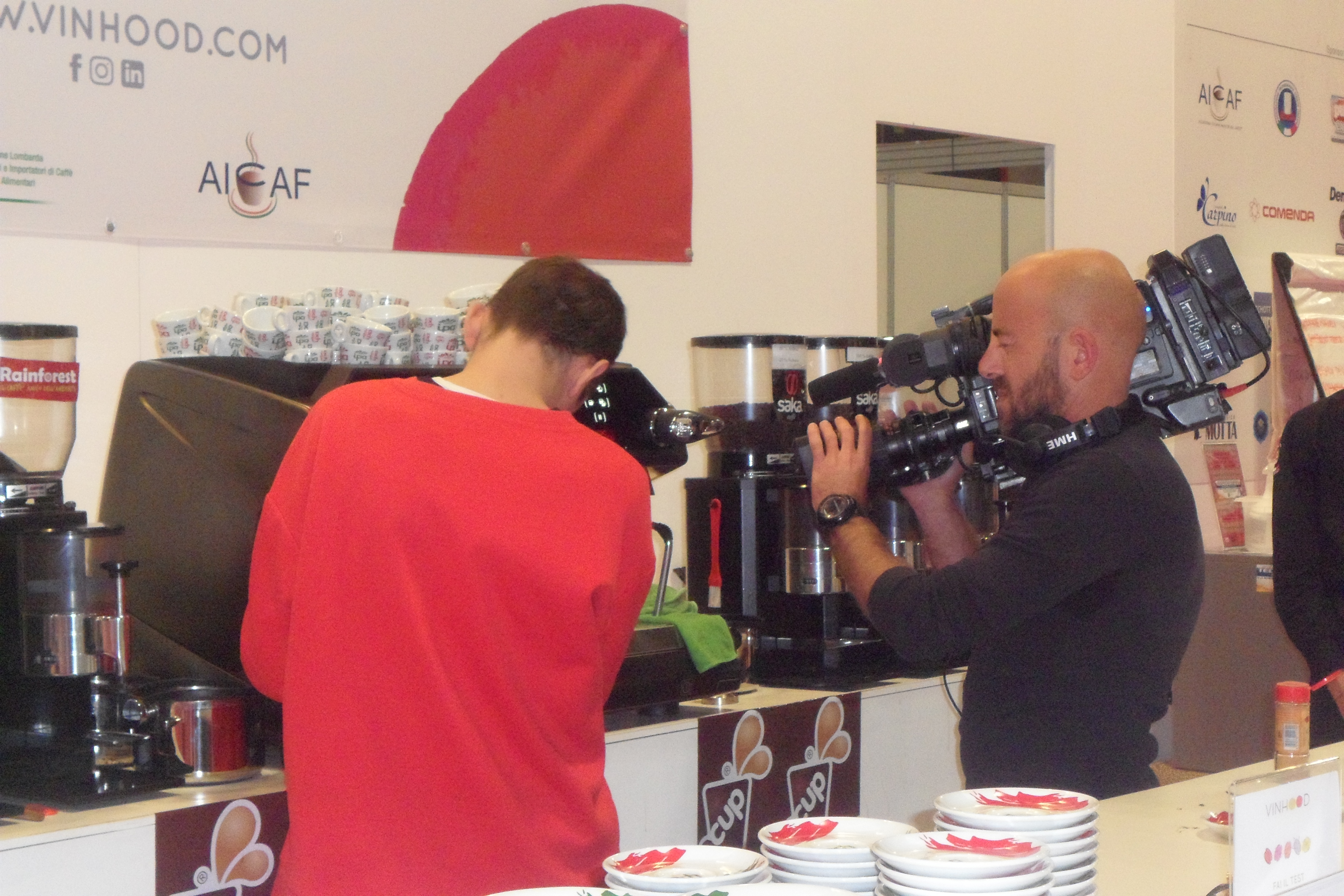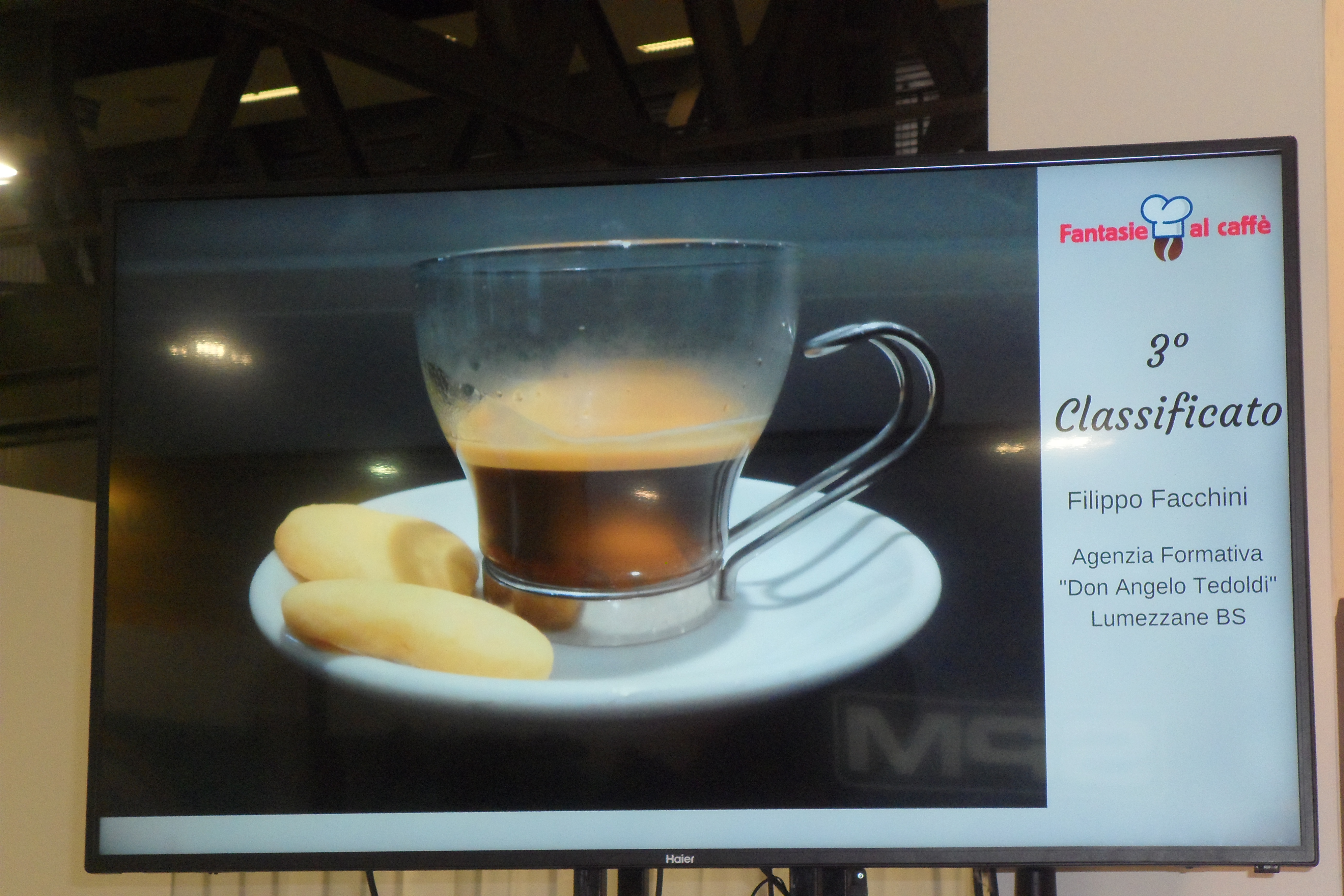 Per iniziativa della Docente, la nostra Vicepresidente nazionale, la classe di Filippo ha partecipato al concorso indetto da FIPE per trovare nuove ricette, ripetibili, al caffè abbinato a spezie. Filippo (che vediamo nelle fotografie mentre prepara il caffè filmato dall’operatore video il giorno della premiazione, lo scorso 24 ottobre, nell’ambito di HOST a Milanofiera) era il premiato più giovane.