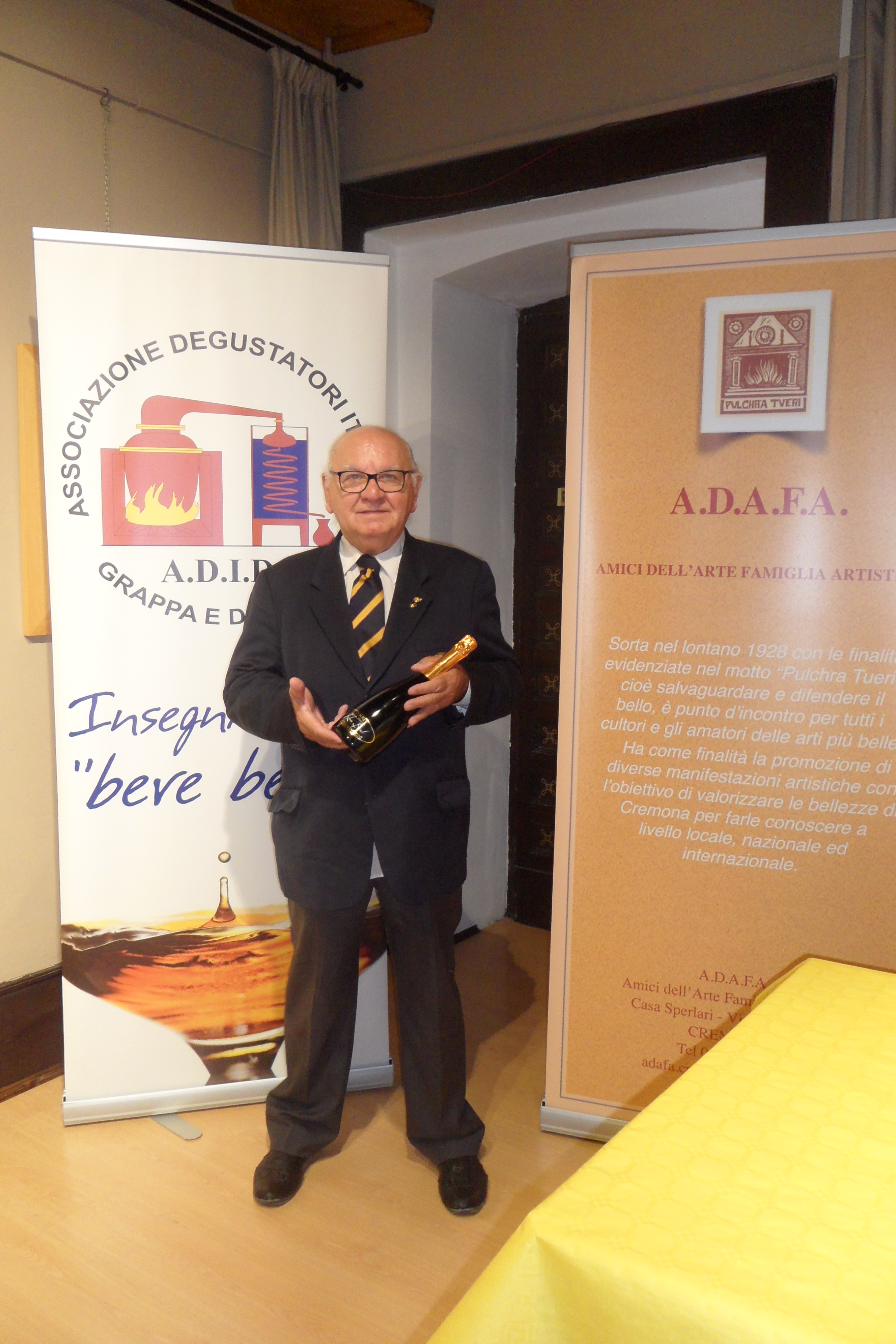 Ieri, sabato 22 settembre, A.D.I.D. Brescia è stata ospitata dall’Associazione cremonese A.D.A.F.A., Amici dell’Arte Famiglia Artistica, sodalizio cremonese tra artisti ed amatori dell’arte con sede in Casa Sperlari, nel centro storico di Cremona. Per la prima volta, l’Associazione ha inteso inserire la cultura del “bere bene” e consapevole nella cultura più in senso stretto, con la proposta di una degustazione di distillati in abbinamento a cibi, accuratamente selezionati dal Governatore e dal Vicegovernatore di A.D.I.D. Brescia.