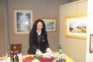 Accanto a loro le confetture di mela/cannella, mela/pera e altre, con adeguata focaccia dolce per offrirle ai presenti, dell’Azienda Agricola Ambrosi, abbinate alla Grappa barricata Peroni.